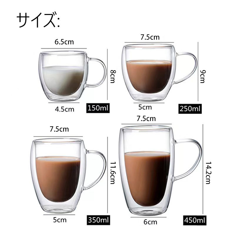 ガラスカップ 耐熱ガラス コーヒーカッ コーヒー お茶用品 マグカップ ティーカップ マグカップ 豊富な品揃え 150ML 250ML 350ML 450ML