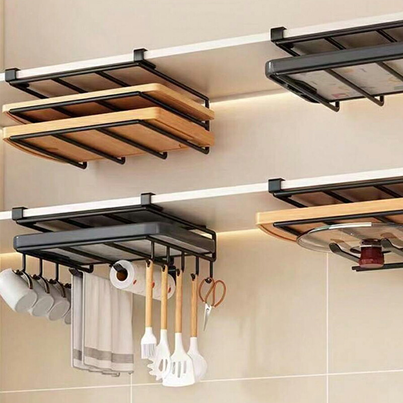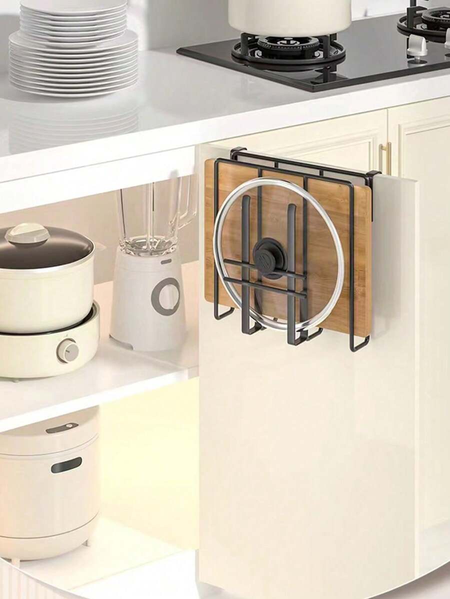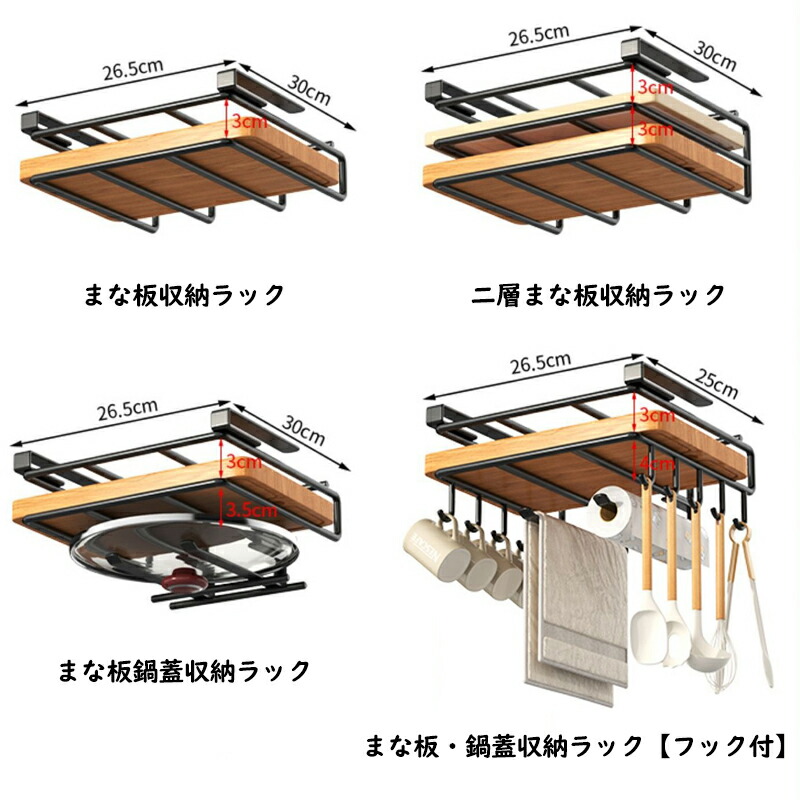 キッチン収納 カッティングボード フタ キッチン整理用品 その他 豊富 ブラック ホワイト まな板収納ラック まな板鍋蓋収納ラック まな板・鍋蓋収納ラック【フック付 二層まな板収納ラック