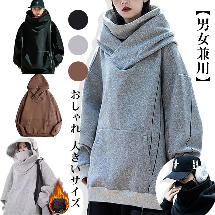 ボリュームネックパーカー カップル パ レディースファッション 早い者勝ち ブラック グレー ブラウン M L XL 2XL 3XL