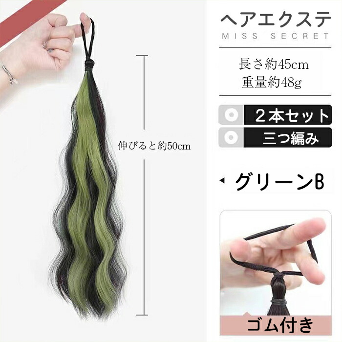 2本セット エクステ 子供 ヘアエクス ウィッグ つけ毛 その他 早い者勝ち グリーンA パープル レッド グリーンB ブラックA ブラックB ブラウン カーキ ピンク ブルー グレー