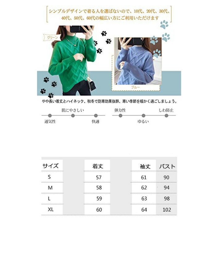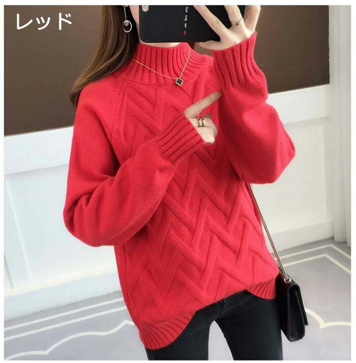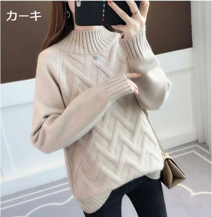 ハイネック ニット レディース セータ レディースファッション 豊富 ブラック ホワイト イエロー ブルー レッド グリーン カーキ S M L XL