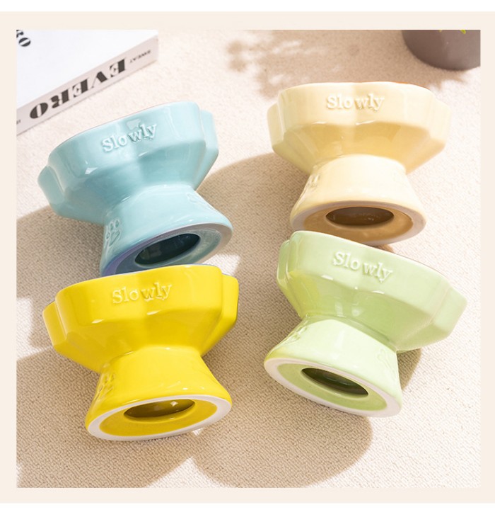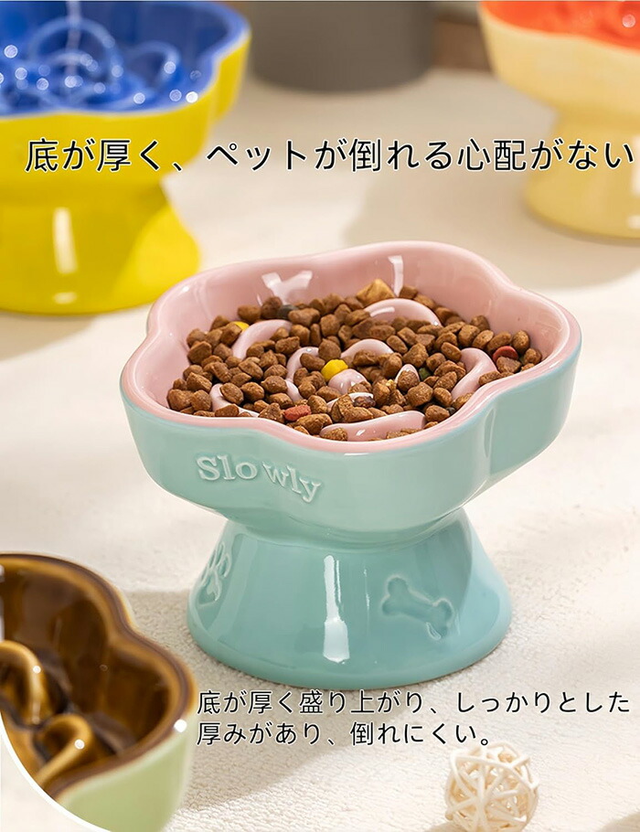 フードボウル 早食い防止 犬 陶器製 グリーン オレンジ ブルー ピンク