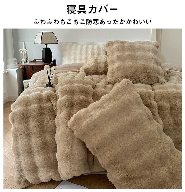 もこもこ 布団カバーセット 4点セット 寝具 寝具カバー シーツ 寝具カバーセット 通販 ホワイト グレー ブラウン ホワイト・ブラウン ピンク