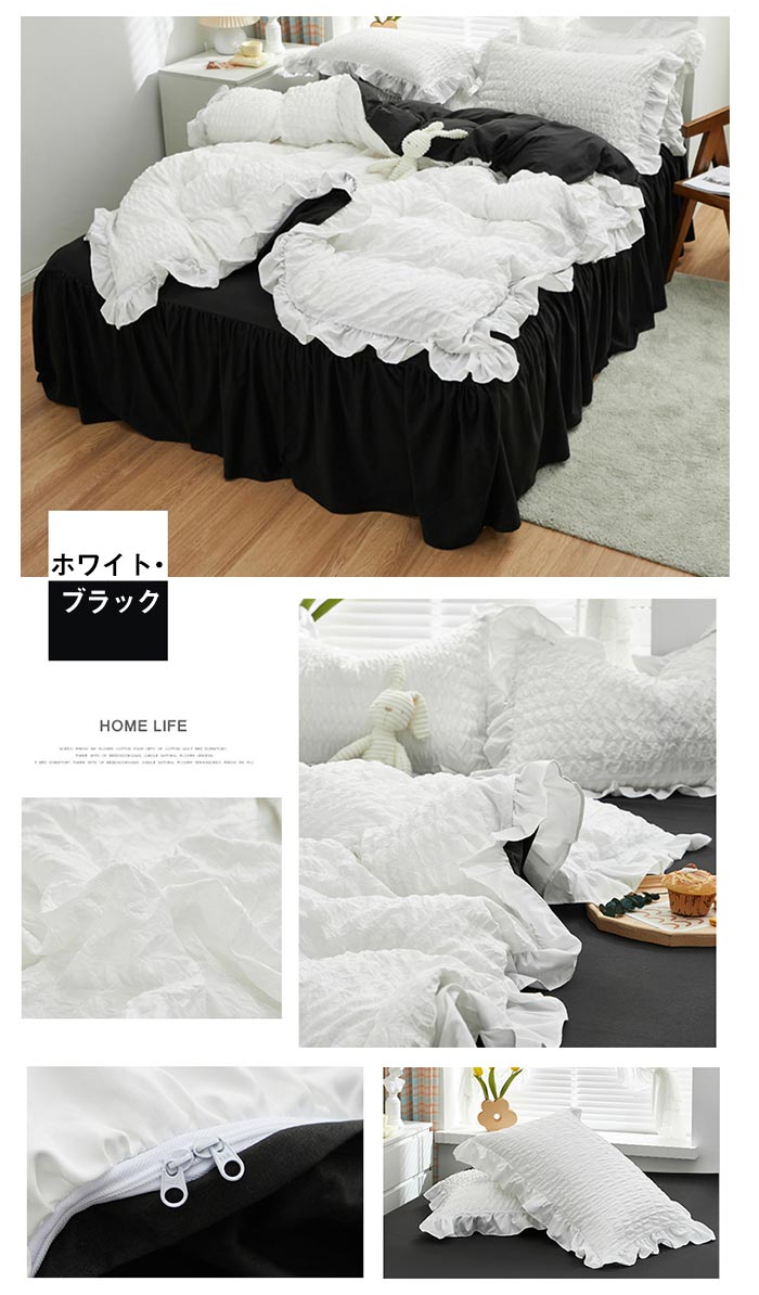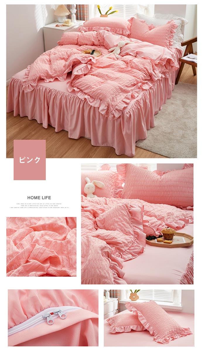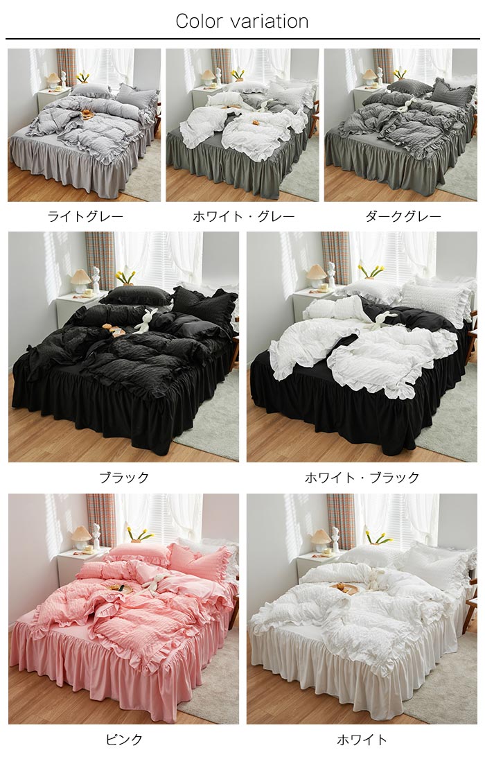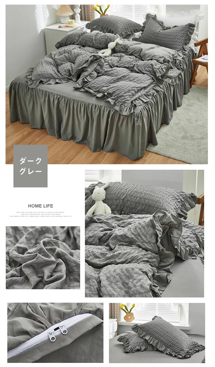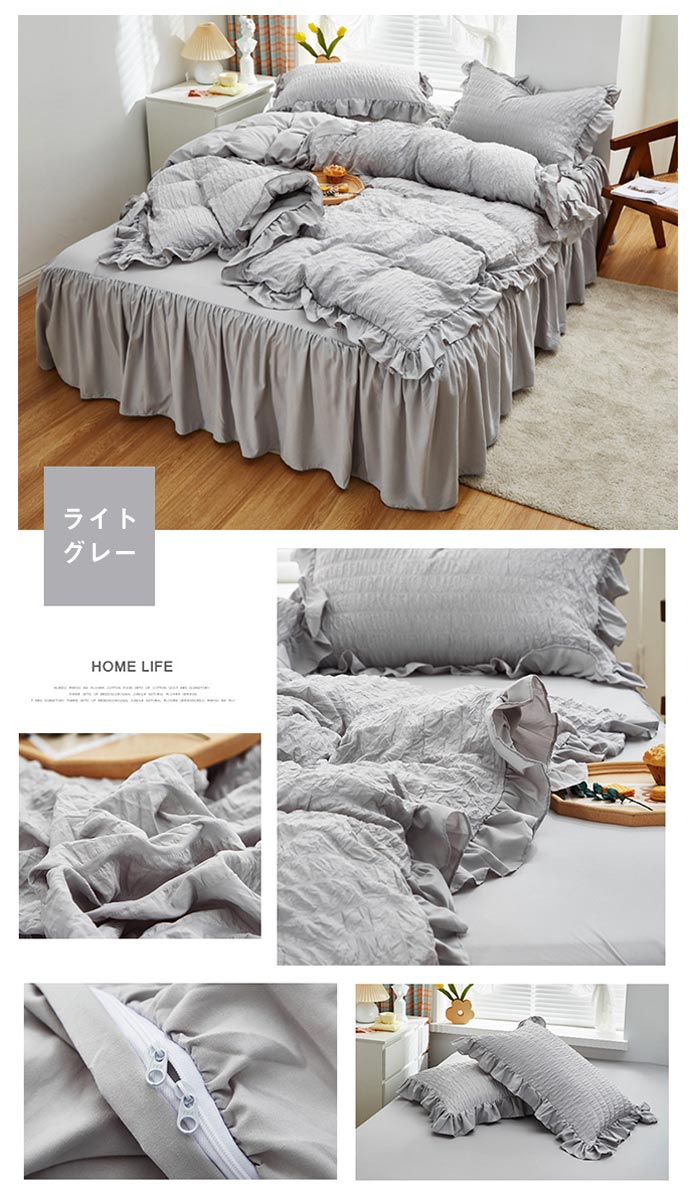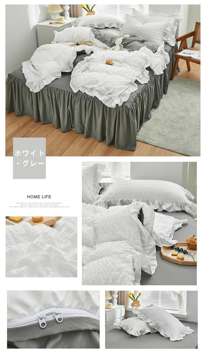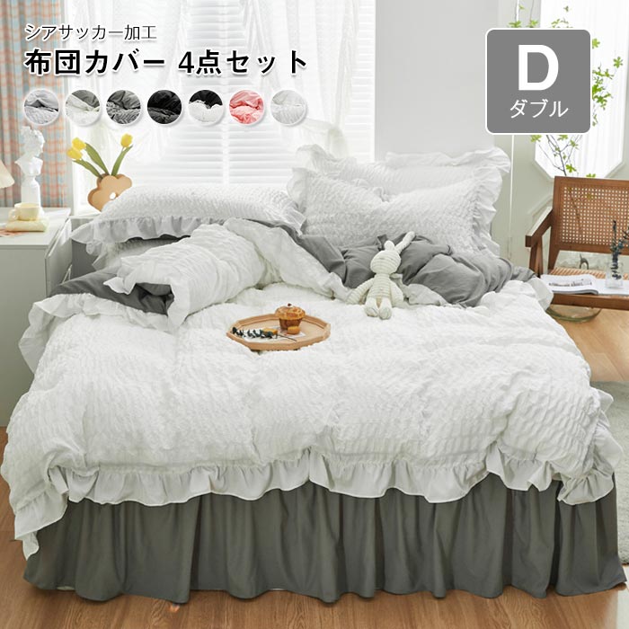 布団カバー 4点セット ダブル シアサ 寝具 寝具カバー シーツ 寝具カバーセット 人気 ライトグレー ホワイト・グレー ダークグレー ブラック ホワイト・ブラック ピンク ホワイト