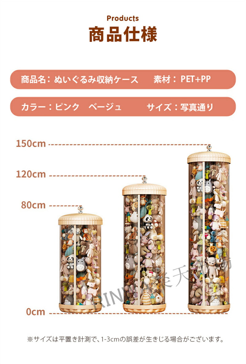 ぬいぐるみ 収納 透明 円柱 収納ボッ 80cm 120cm 150cm ピンク ベージュ