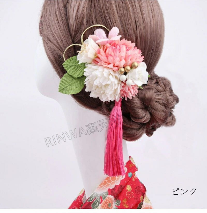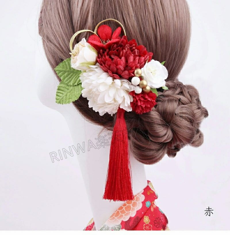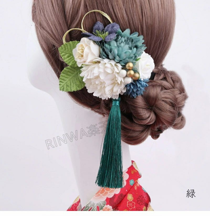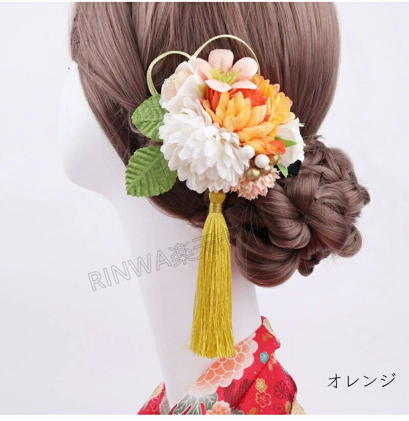 和装成人式 組紐 紐 花 ヘア アクセ 和服 和装小物 髪飾り 人気 赤 緑 ピンク オレンジ