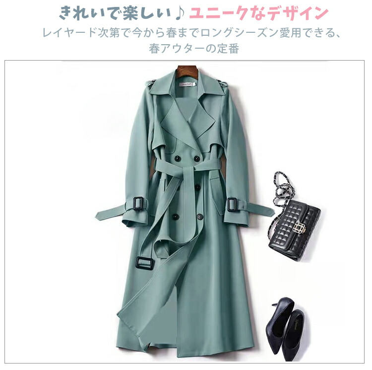 スプリングコート トレンチコート レディース 春 ロング 大きいサイズ 入学式 ネイビー アウター ライトアウター羽織り 梅雨 ロング丈 防風 コート きれいめ 通勤 ゆったり 秋 ベルト ボタ 大人