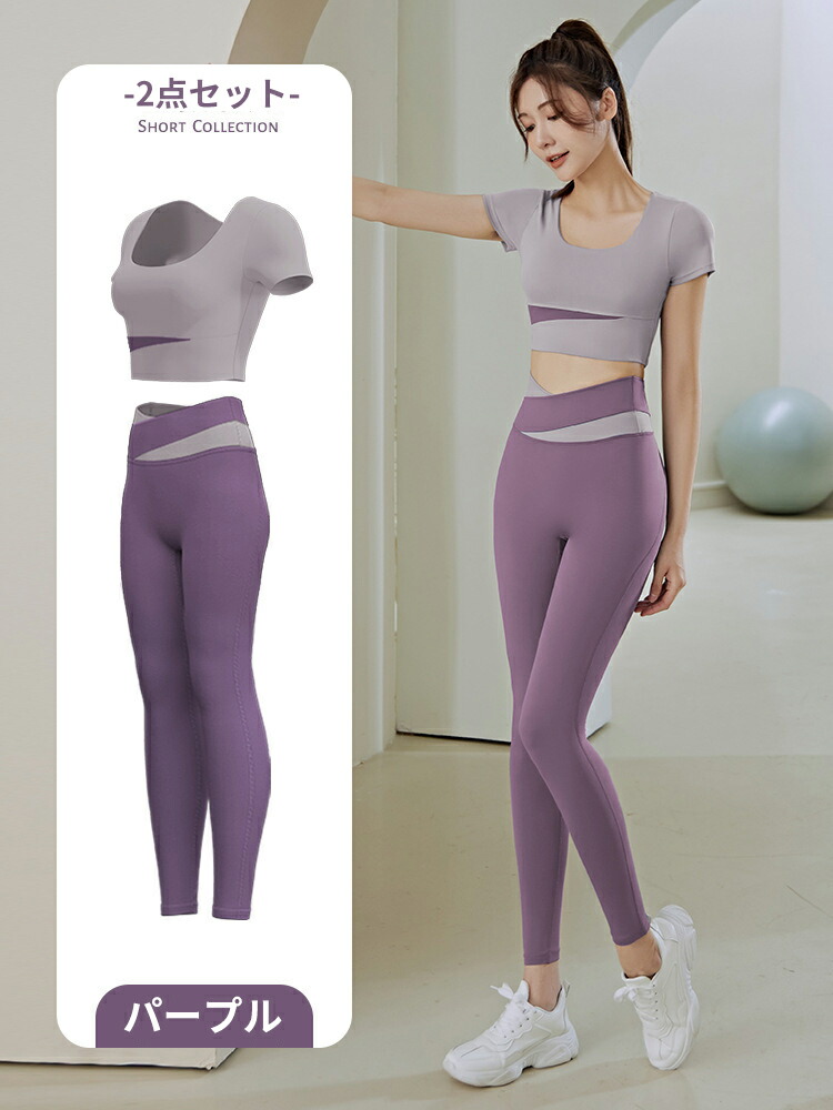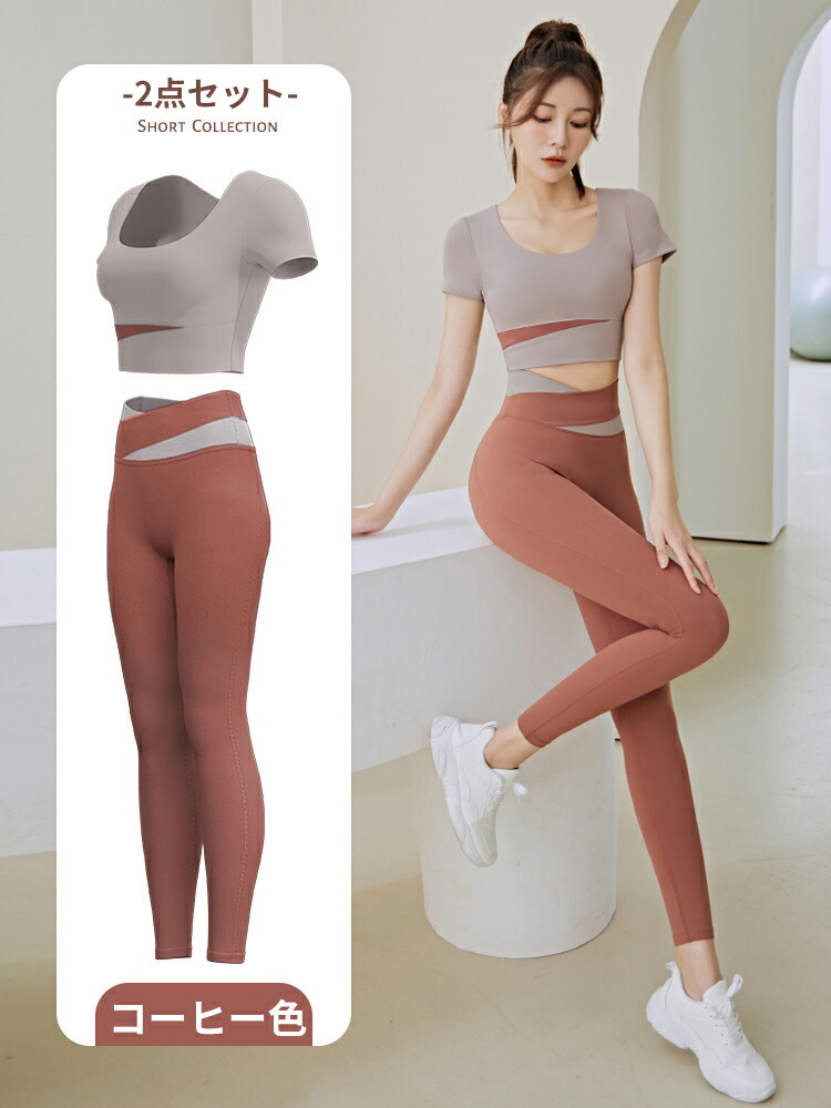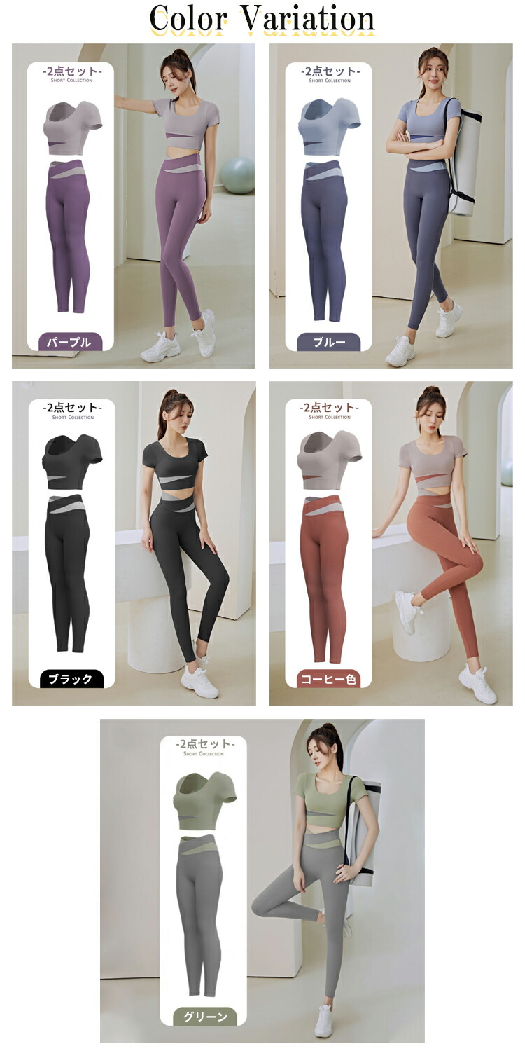 ヨガウェア スポーツウェア 上下セット スポーツ アウトドア 豊富 ブラック ブルー コーヒー色 パープル グリーン S M L XL 2XL