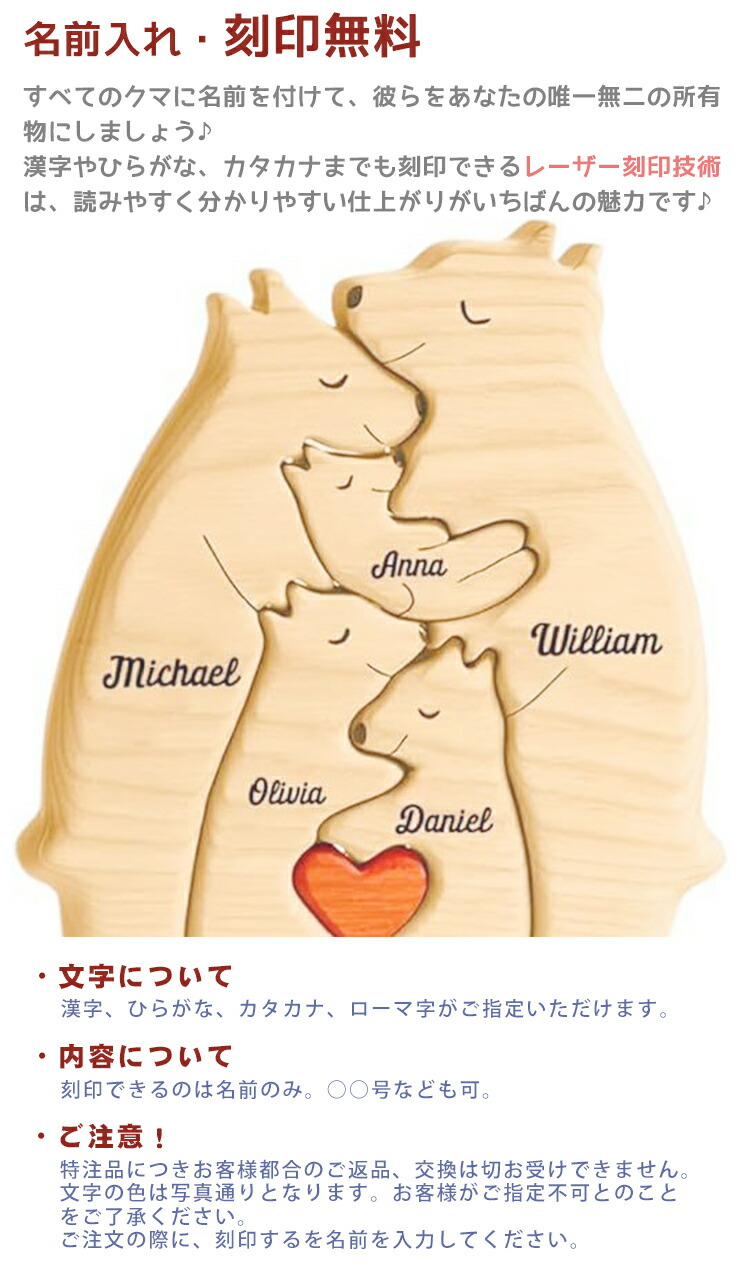 置物 名入れ 木製 おもちゃ パズル 家族 ギフト プレゼント 出産祝い ギフトセット 木製おもちゃ 積み木 男の子 女の子 名前入り 名入れ無料 可愛い 天然木 ウッドベア 木 抱き メッセージ入り