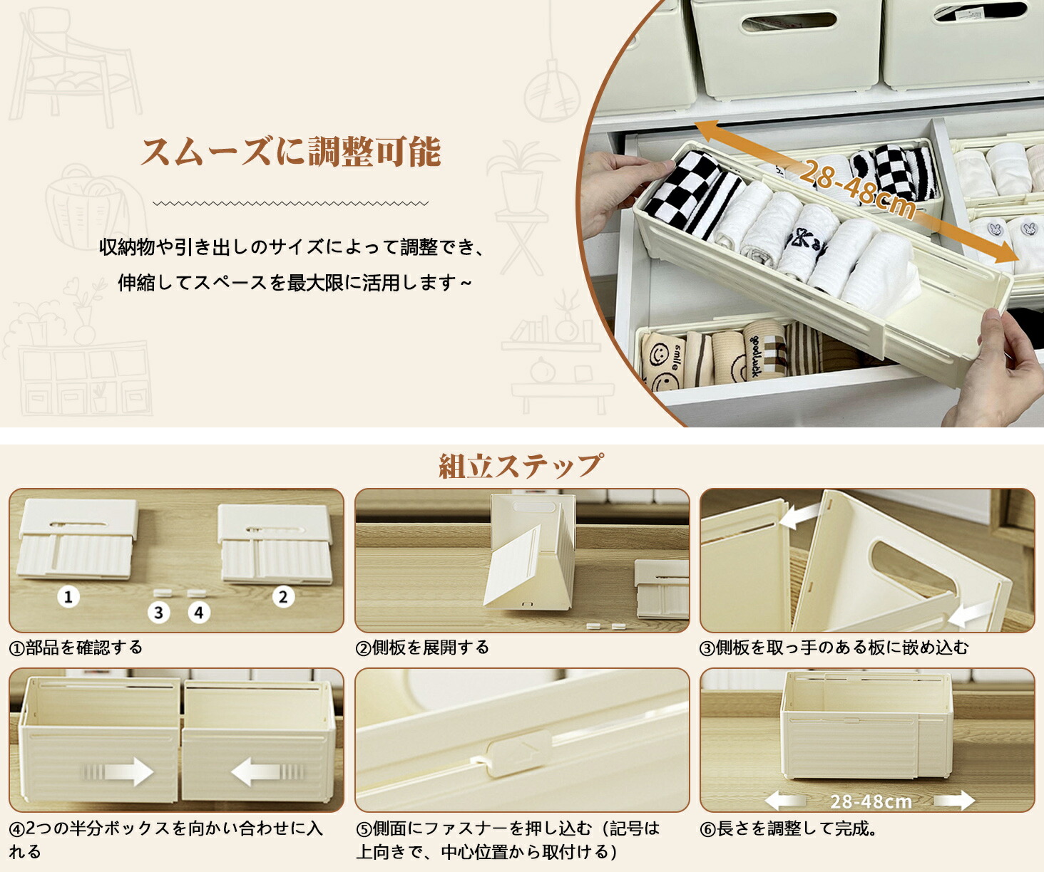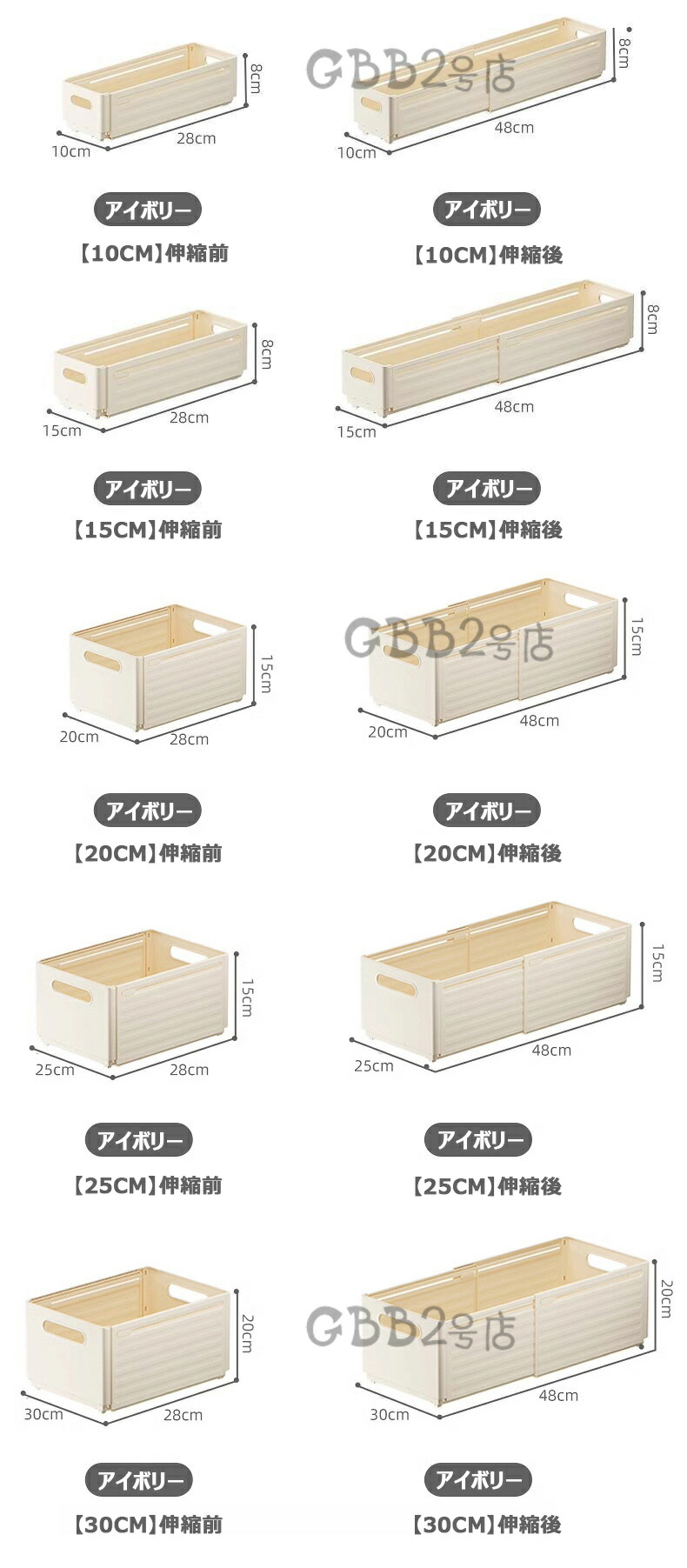 収納ケース 伸縮式 収納ボックス プラ ホワイト【幅10cm】 ホワイト【幅15cm】 ホワイト【幅20cm】 ホワイト【幅25cm】 ホワイト【幅30cm】 アイボリー【幅10cm】 アイボリー【幅15cm】 アイボリー【幅20cm】 アイボリー【幅25cm】 アイボリー【幅30cm】