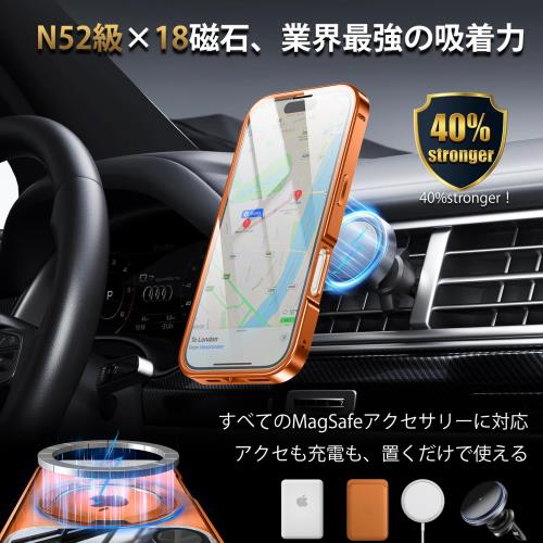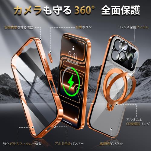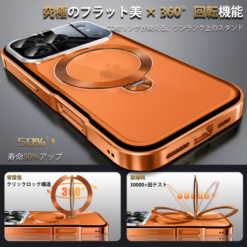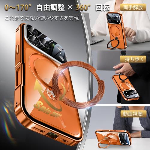 iPhone 17 Pro Max 用 両面 MagSafe対応 ケース アイフォン17プロマックス フルカバー 90°自立 × 360°回転 縦横多角度 Uovon スマホケース ゼンマイ式スタンド