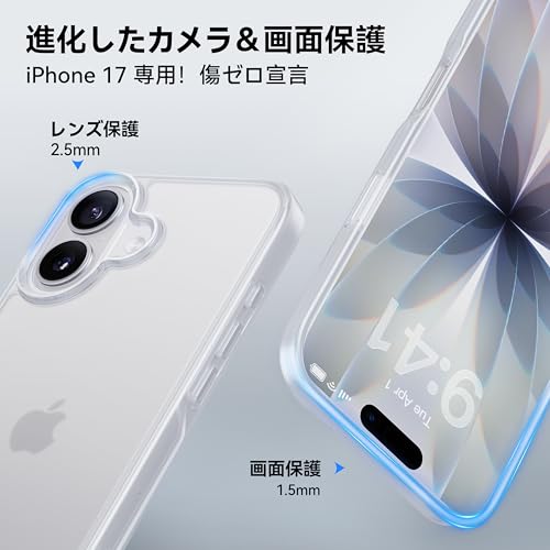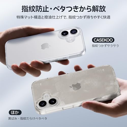 米軍MIL規格 指紋防止CASEKOO iPhone 17 用 ケース 耐衝撃 滑り止め 指紋防止 マット仕上げ ストラップホール付き 黄変防止 カバー ワイヤレス充電対応 ア 耐久性