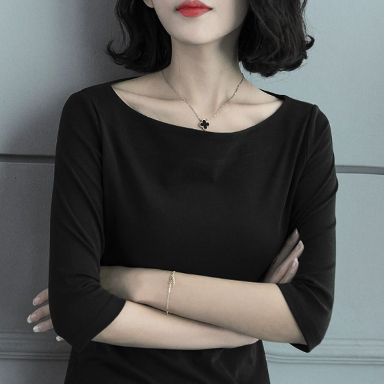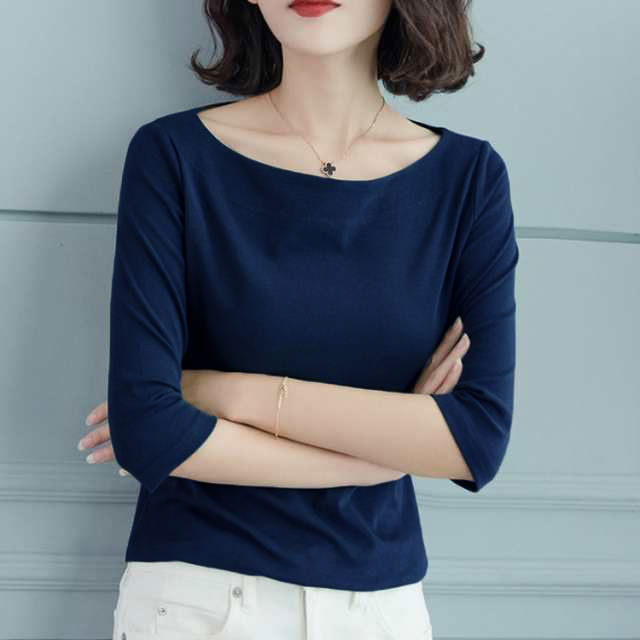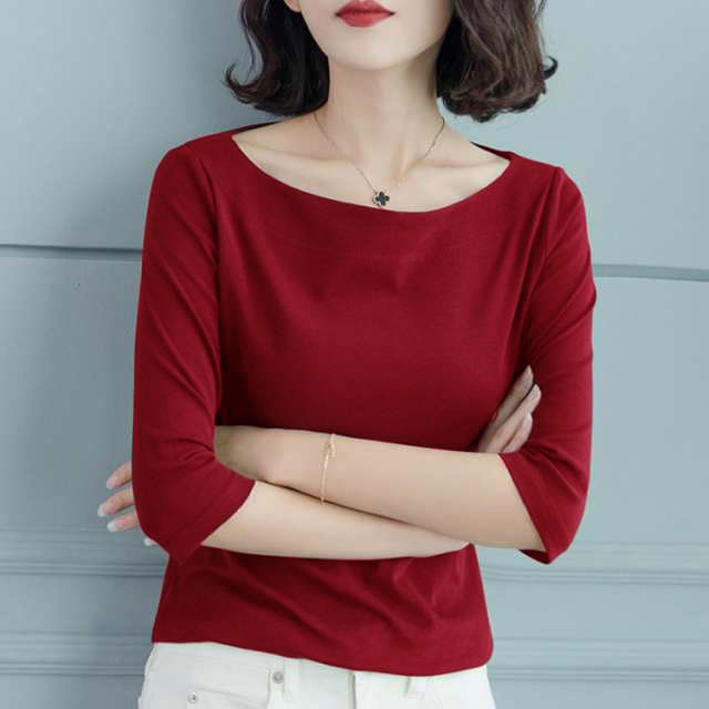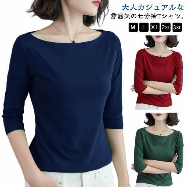 Tシャツ 七分袖 プルオーバー レディ レディースファッション 人気 ブラック ホワイト ワインレッド ネイビー ダークグリーン M L XL 2XL 3XL
