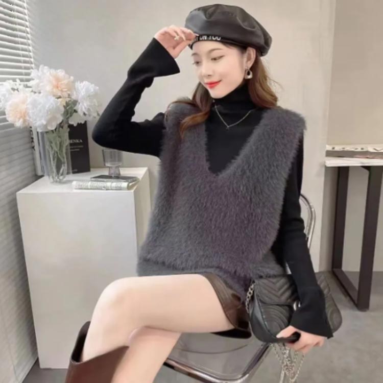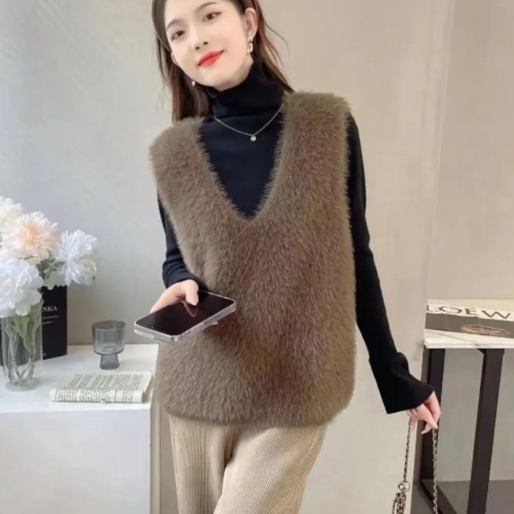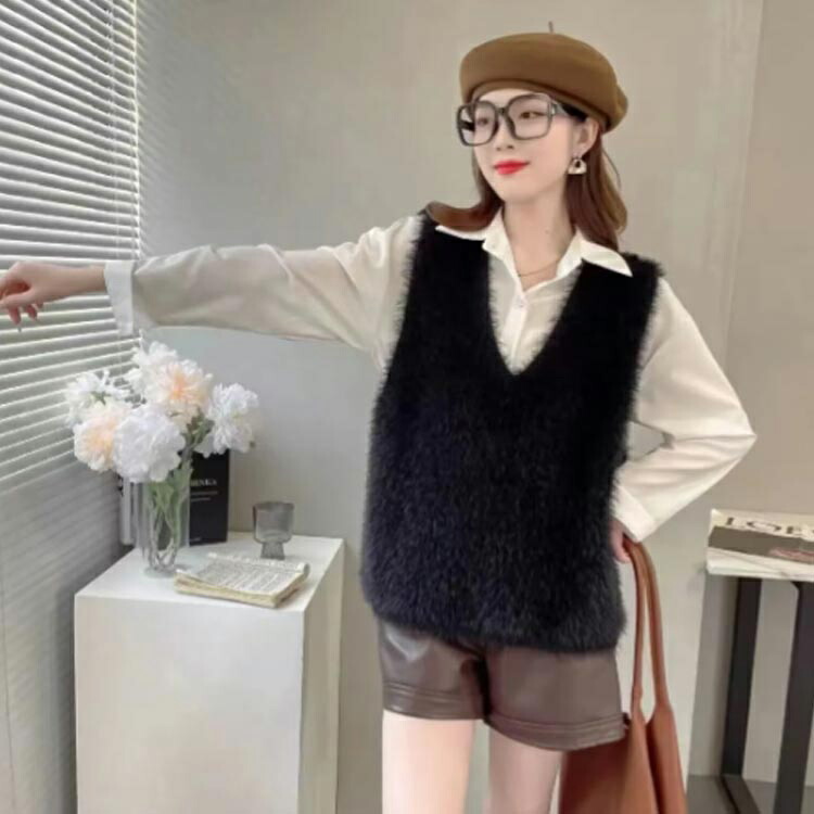 シャギーニット Vネック ニットベスト レディースファッション 豊富 ブラック グレー ブラウン ライトブラウン グリーン S(おすすめ40-47.5kg) M(おすすめ47.5-55kg) L(おすすめ55-60kg) XL(おすすめ60-65kg) 2XL(おすすめ65-70kg) 3XL(おすすめ70-72.5kg)