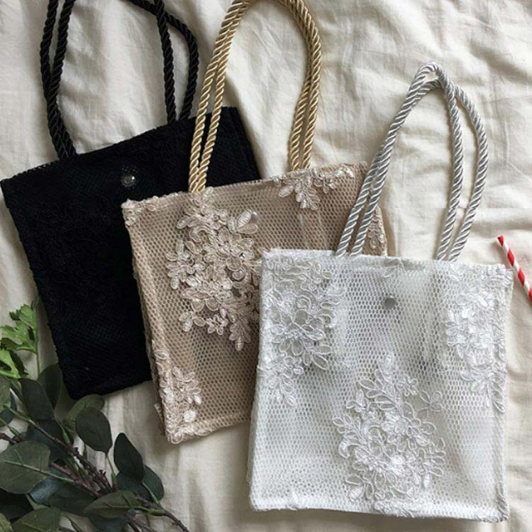 レースバッグ レーストートバッグ かわ バッグ レディースバッグ トートバッグ 新登場! ホワイト ブラック シャンパン