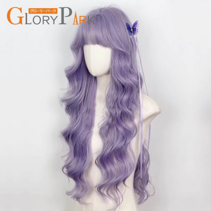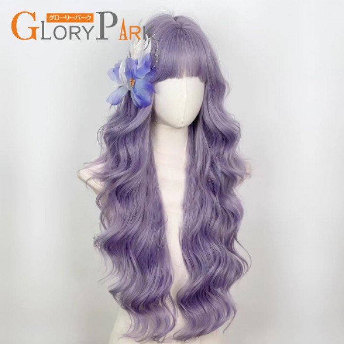 ウィッグ ロング パープル 紫 ゆるウェーブ フリーサイズ 前髪あり 自然 小顔効果 ロリータ 原宿系 日常使い 撮影 レディース 耐熱 フルウィッグ コスプレ