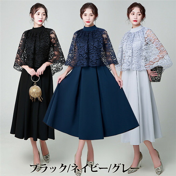 結婚式 ワンピース マキシワンピ パー レディースファッション 新登場! XS S M L XL 2XL 3XL グレー ブラック ネイビー