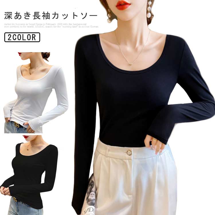 カットソー 長袖 Tシャツ インナー レディースファッション 特集 ブラック ホワイト S M L XL 2XL