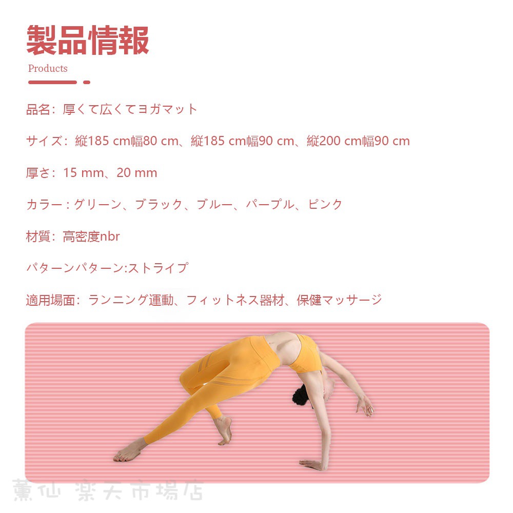 ヨガマット 185*90*15MM ト スポーツ アウトドア 続々登場 パープル ピンク ブラック レイクブルー