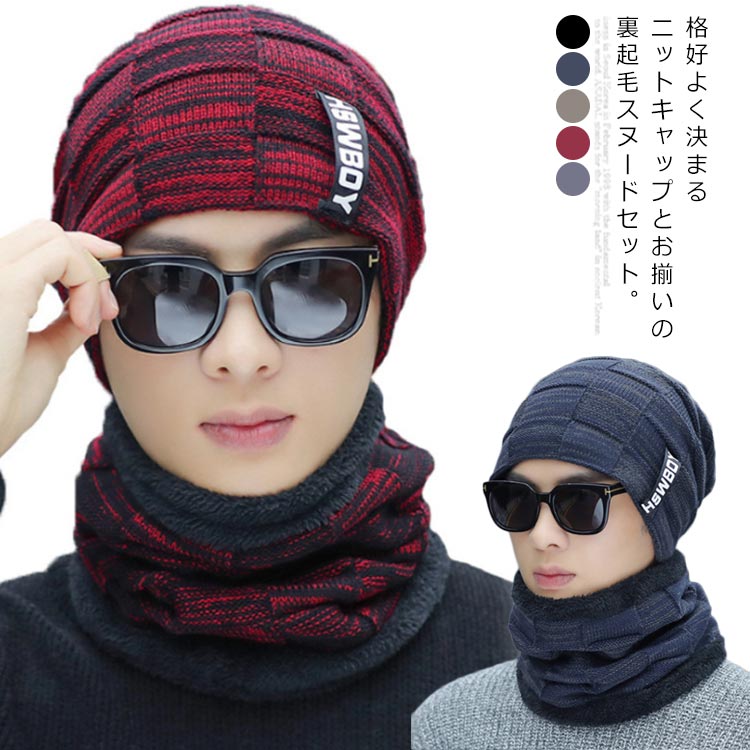 ニットキャップ 防寒 ネックウォーマー 帽子 メンズ帽子 ニット帽 人気 ブラック ダックブルー グレー ワインレッド ベージュ