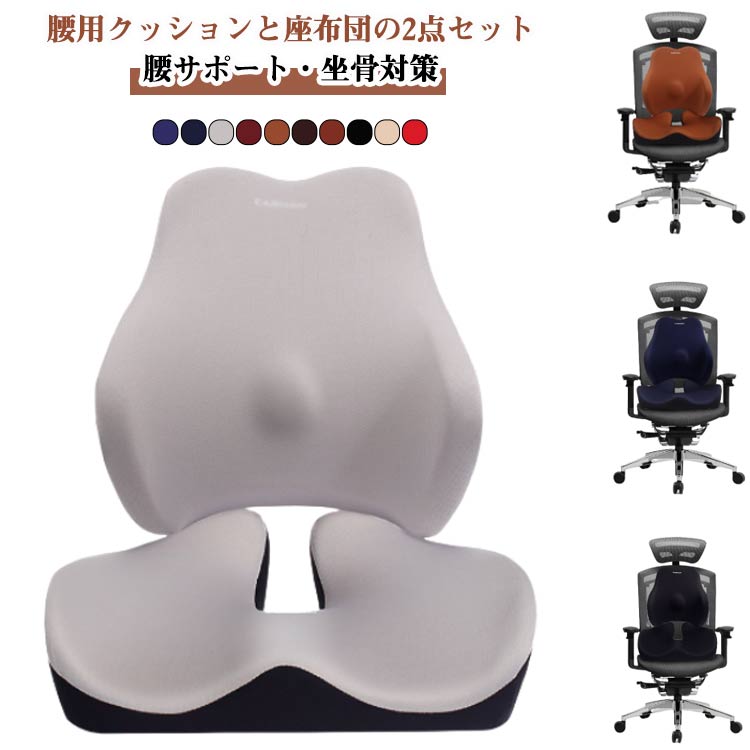 腰痛クッション 骨盤クッション 2点セ ダークブルー ネイビー グレー ワインレッド オレンジ ブラウン レッドブラウン ブラック ベージュ レッド 背もたれクッション+ 座布団
