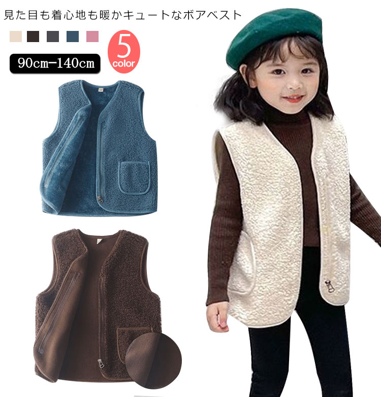 子ども服 裏起毛 ボアベストキッズ ベ キッズ ベビー マタニティ 新登場! アイボリー ダークコーヒー グレー ブルー ピンク 90 100 110 120 130 140
