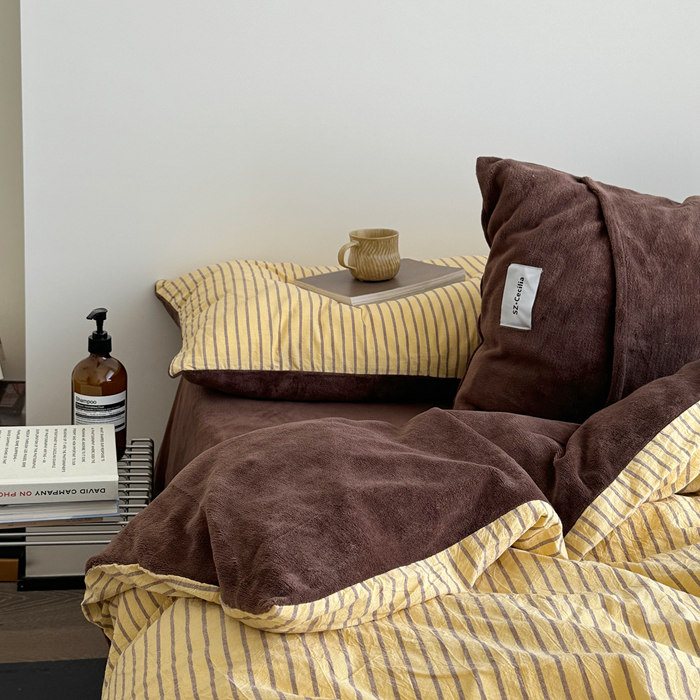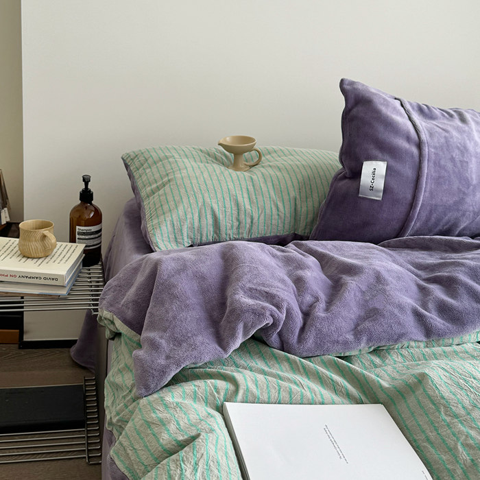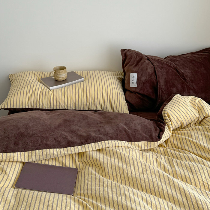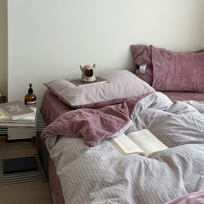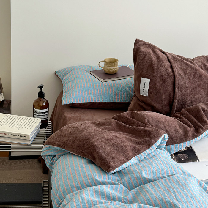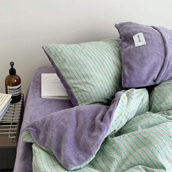 掛け布団カバー シングル 3点4点セット 秋冬 もこもこ かわいい 暖かい あったか 綿+フランネル セミダブル ストライプ 掛けカバー 掛けふとんカバー 掛布団カバー 毛布カバー 布団カバ 掛カバー