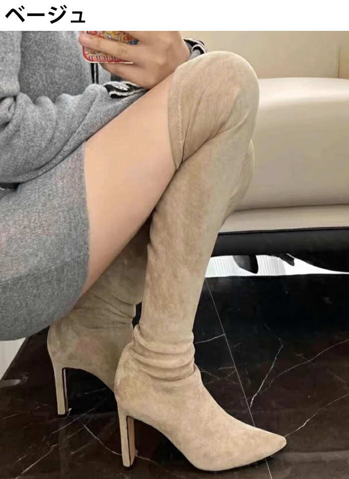ニーハイブーツ レディース ロングブー 靴 通販 ブラック ベージュ 35(内寸22.5cm) 36(内寸23cm) 37(内寸23.5cm) 38(内寸24cm) 39(内寸24.5cm) 40(内寸25cm) 41(内寸25.5cm) 42(内寸26cm)