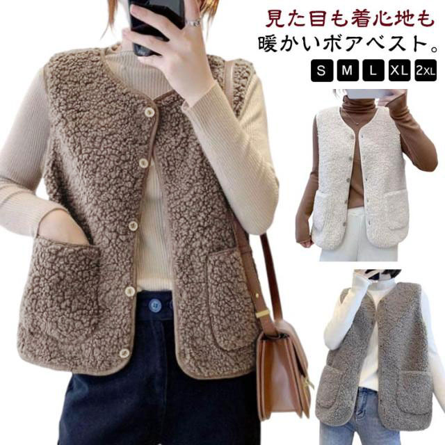 ボアベスト ゆったり ショート丈 レデ レディースファッション 早い者勝ち コーヒー ベージュ グレー S M L XL 2XL