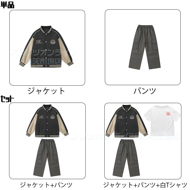 スタジャン キッズ ダンス衣装 灰色 キッズ ベビー マタニティ 早い者勝ち ジャケットのみ パンツのみ ジャケット+パンツ ジャケット+パンツ+白Tシャツ 120cm 130cm 140cm 150cm 160cm 170cm 180cm