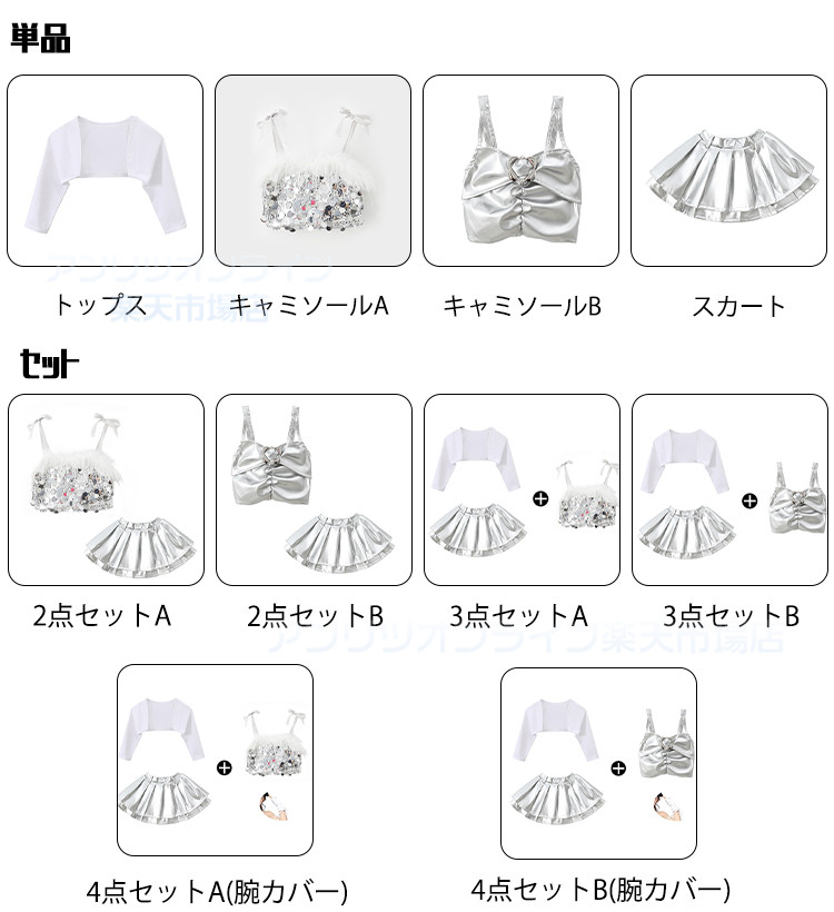 チア チアガール 白 シルバー へそ出 キッズ ベビー マタニティ 続々入荷中 トップスのみ キャミソールAのみ キャミソールBのみ スカートのみ 2点セットA 2点セットB 3点セットA 3点セットB 4点セットA 4点セットB 110cm 120cm 130cm 140cm 150cm 160cm 170cm 180cm