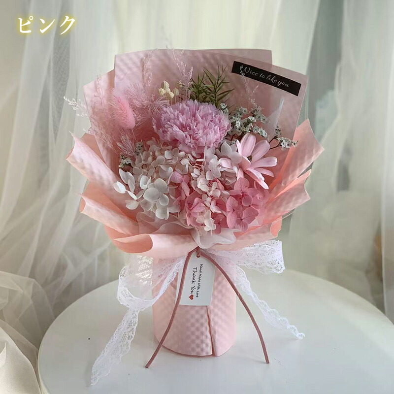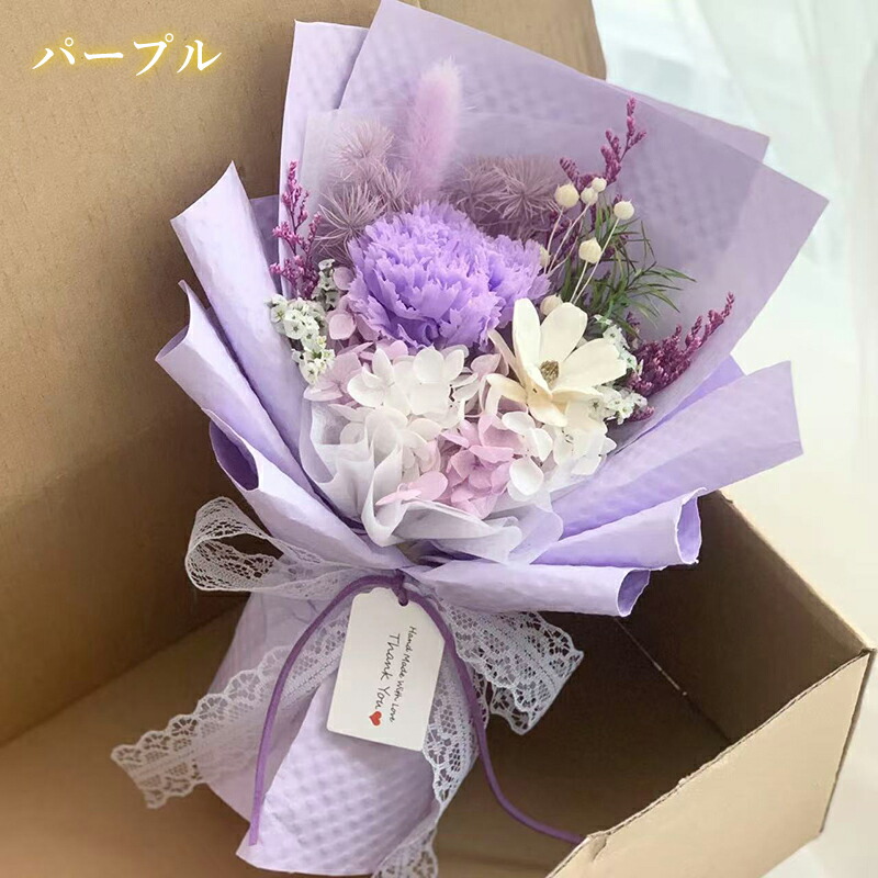 カーネーション 花束 母の日 永生の花 ピンク ブルー パープル レッド ベージュ