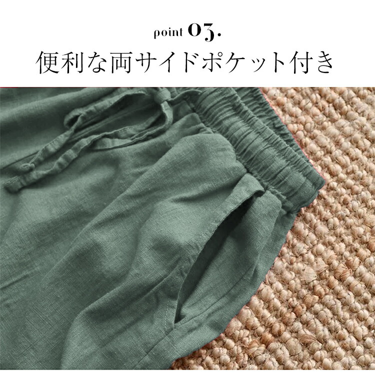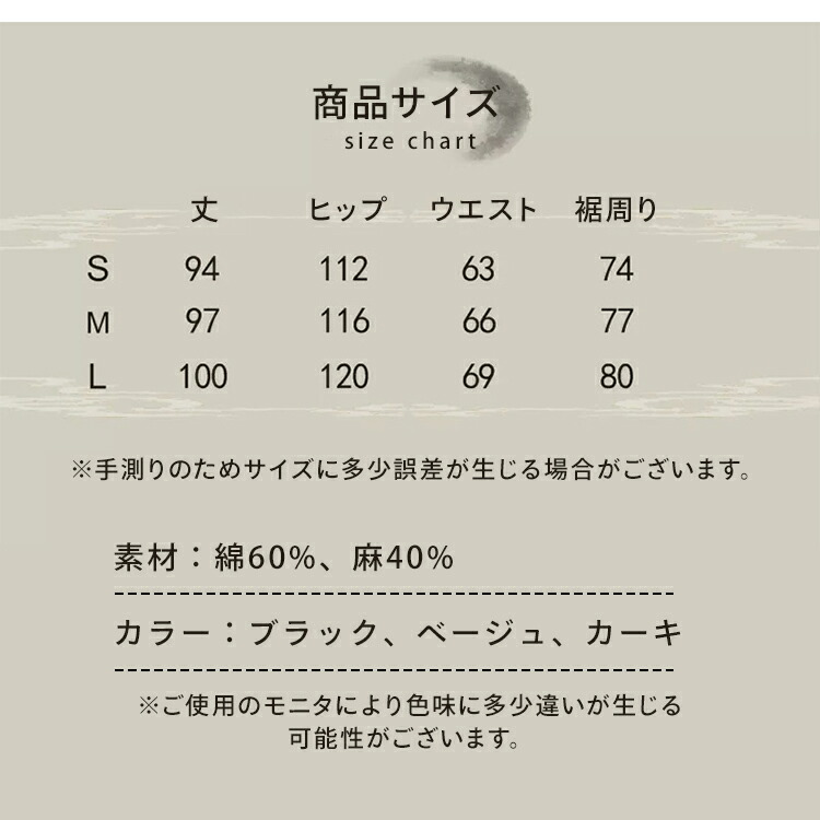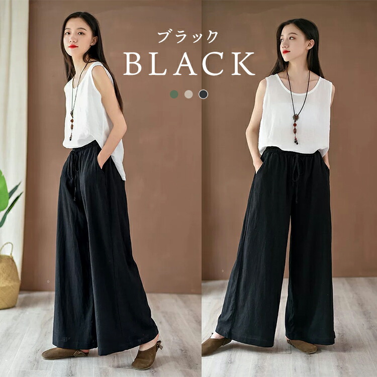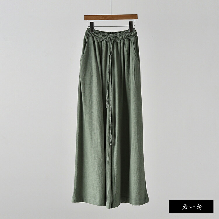 リネン40% 綿麻 ワイド パンツ レ レディースファッション 新登場! カーキ ベージュ ブラック S M L