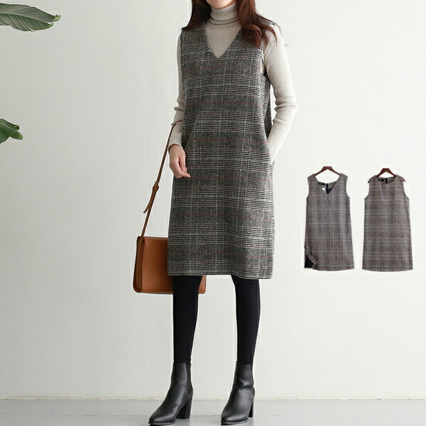 ジャンパースカート グレンチェック 大 レディースファッション 続々登場 M L XL 2XL
