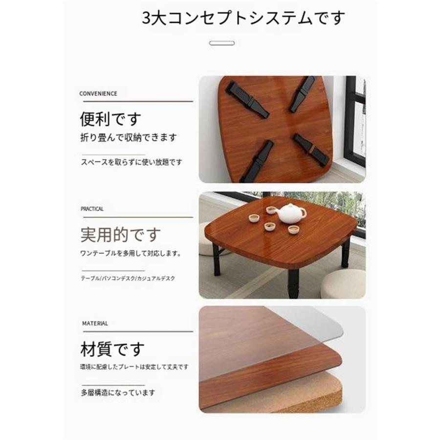 正方形畳テーブル 折りたたみテーブル ウォールナット色 オリジナルの木目 ピンク 濃い木目調 白木目 竹模様の色 黒木目調 60*60*35CM 70*70*35CM 80*80*35CM