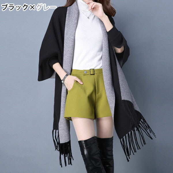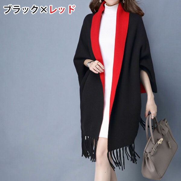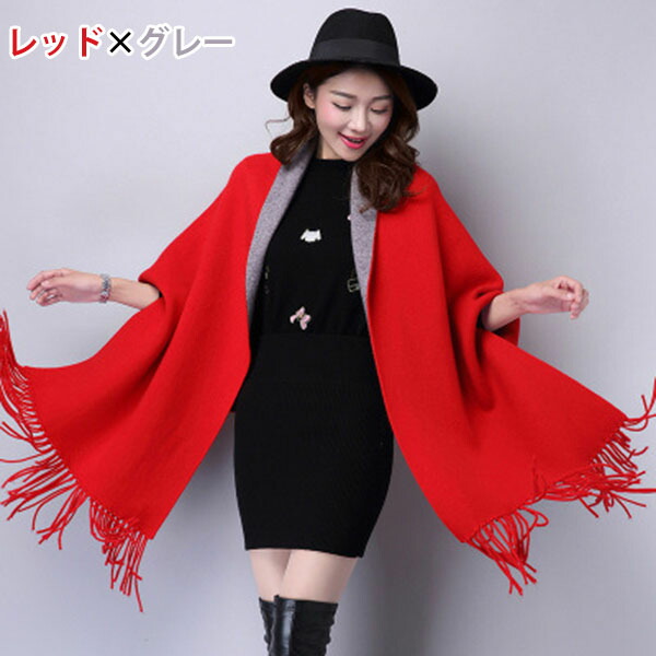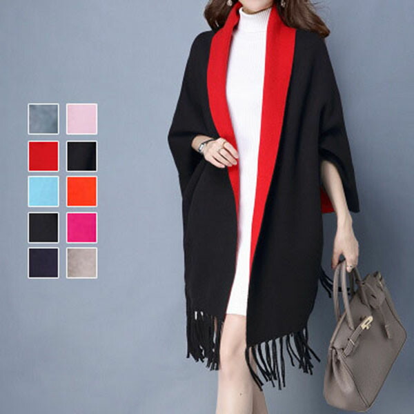 ショールカーディガン レディース ニッ レディースファッション 新作 グレー×ピンク レッド×グレー ブルー×グレー ブラック×グレー ネイビー×レッド ピンク×グレー ブラック×レッド ライトオレンジ×グレー ローズレッド×グレー カーキ×ピンク