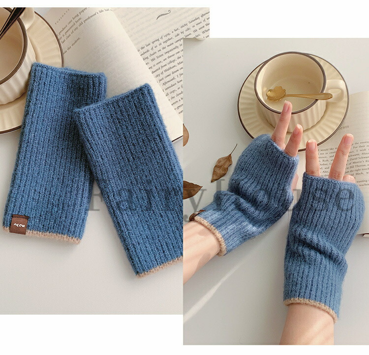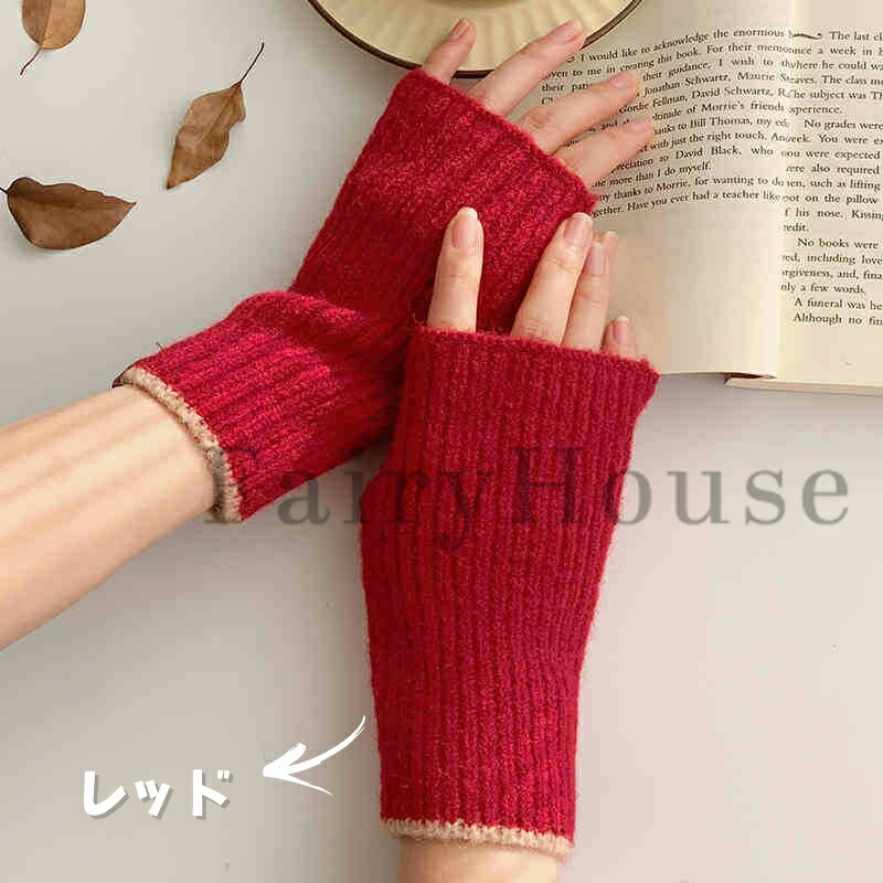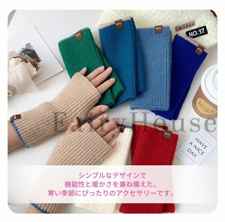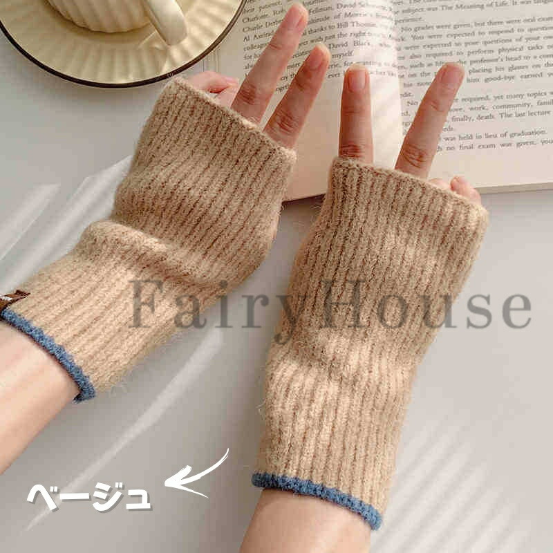 ニット 手袋 指なし レディース アー バッグ 小物 ブランド雑貨 通販 乳白色 レッド ベージュ ネイビー グリーン ブラック 青緑色 くすみブルー 亜麻色