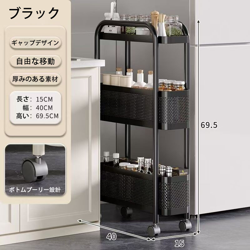 スリムキッチンワゴン 収納家具 キッチ 3層 4層