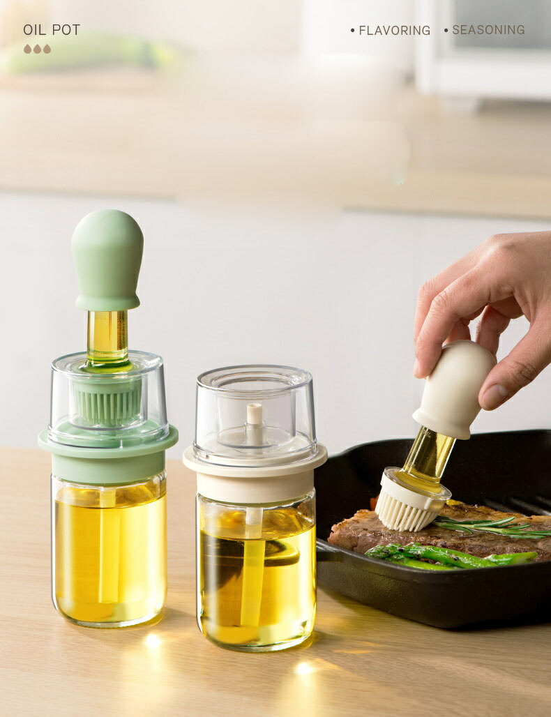 吸引式オイルボトル ブラシ付き オイル キッチン用品 食器 調理器具 新登場! ホワイト1個 グリーン1個 ホワイト2個 グリーン2個 ホワイト+グリーン