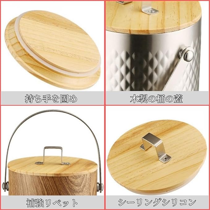 アイスペール おしゃれ 氷 容器 二重 キッチン用品 食器 調理器具 豊富 木目色 ステンレスカラー 1.4L 2L 3L