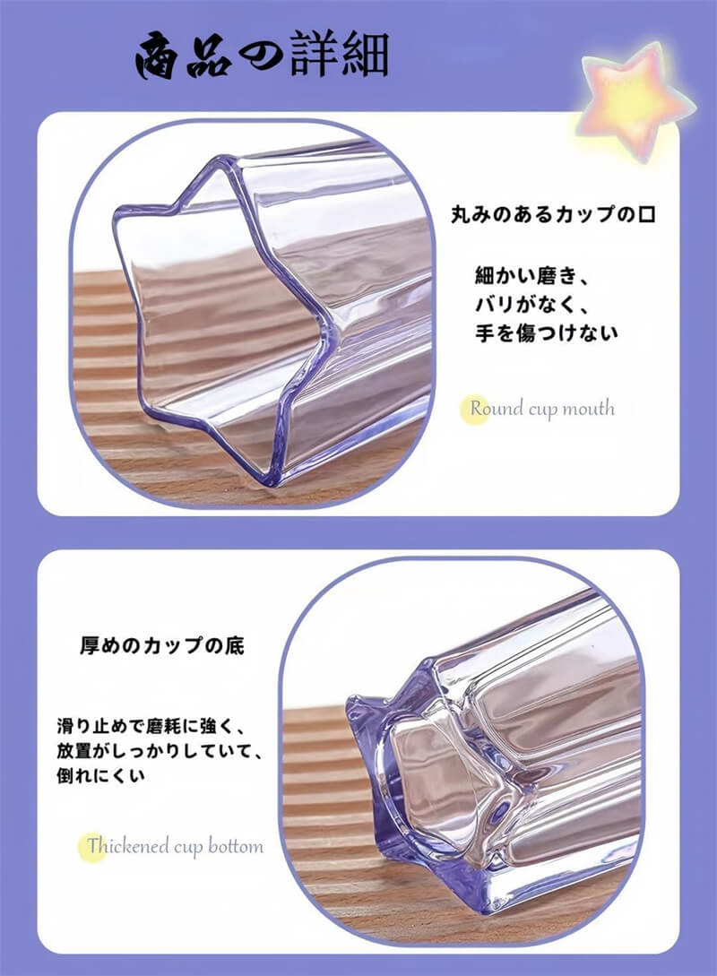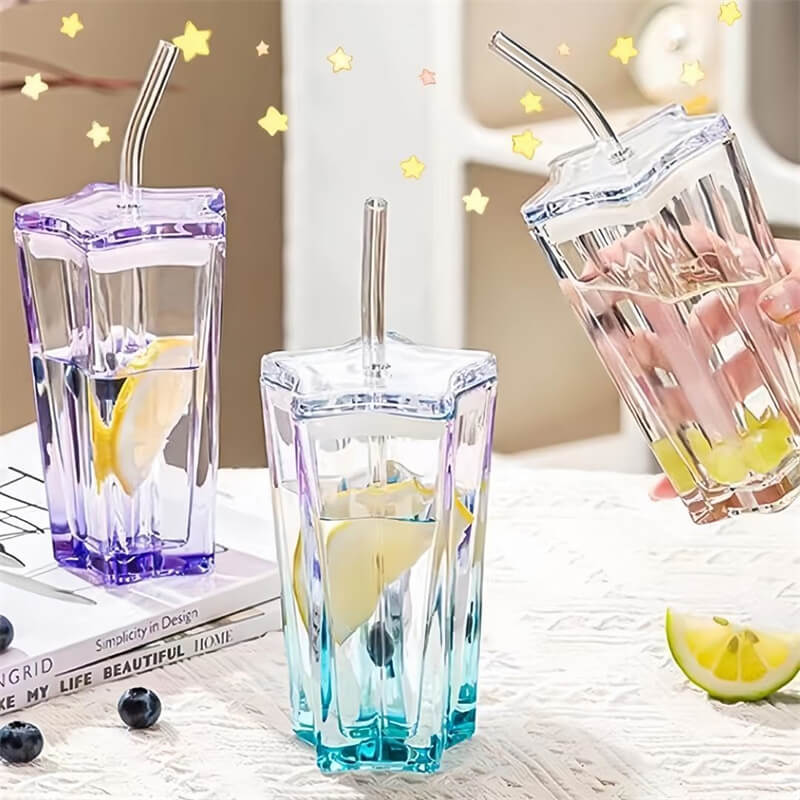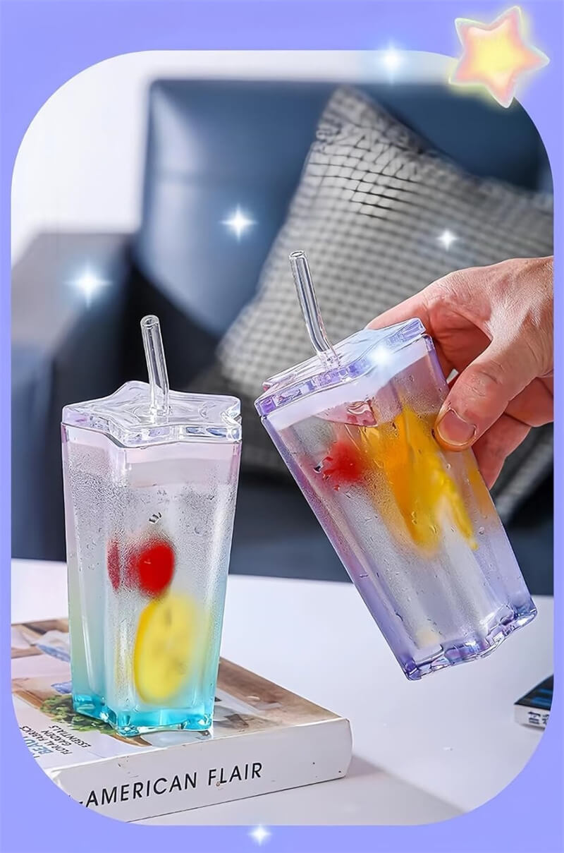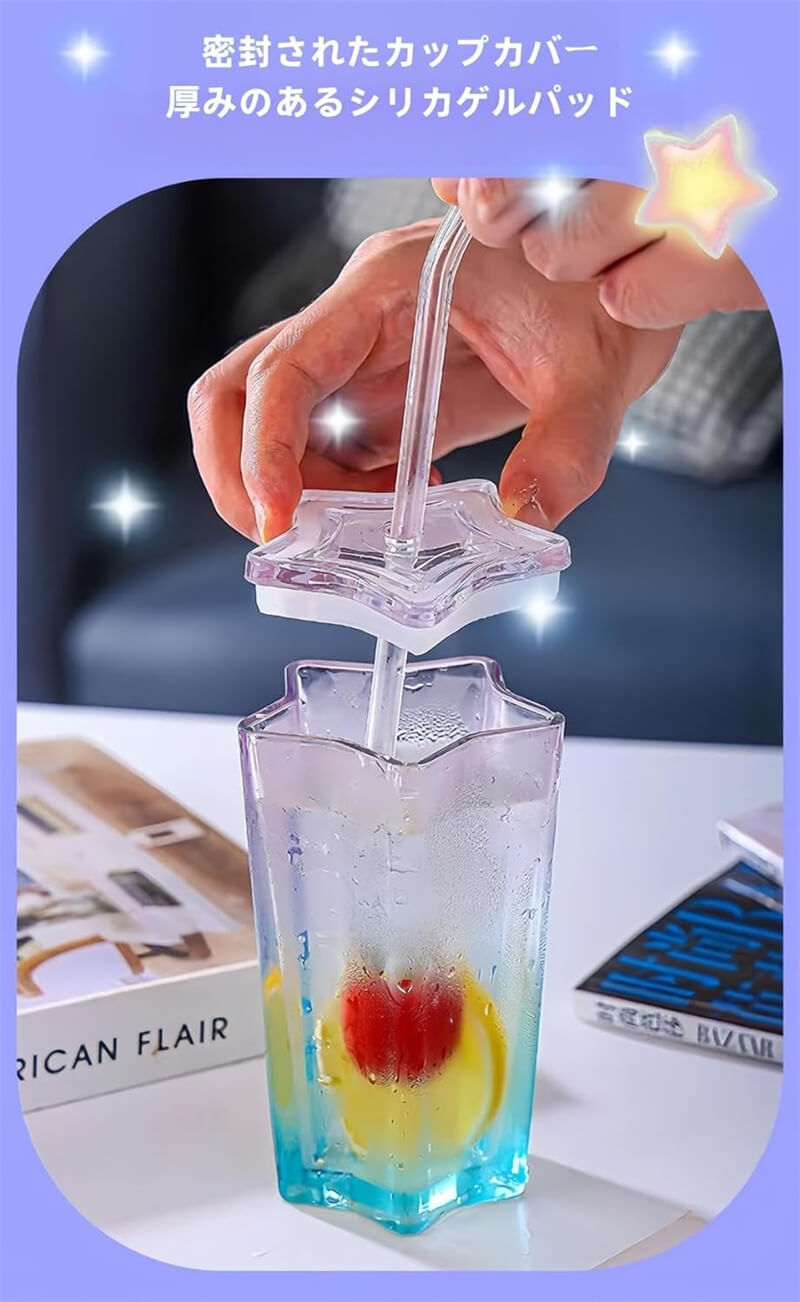 五芒星ガラスカップ ウォータードリンク キッチン用品 食器 調理器具 新作 透明 グラデーションブルー グラデーションパープル