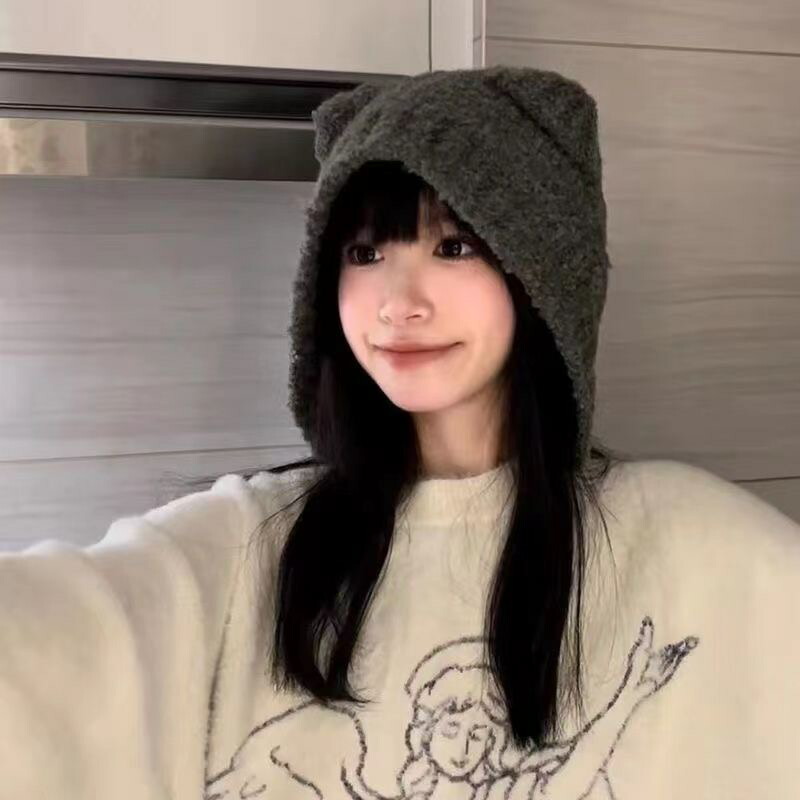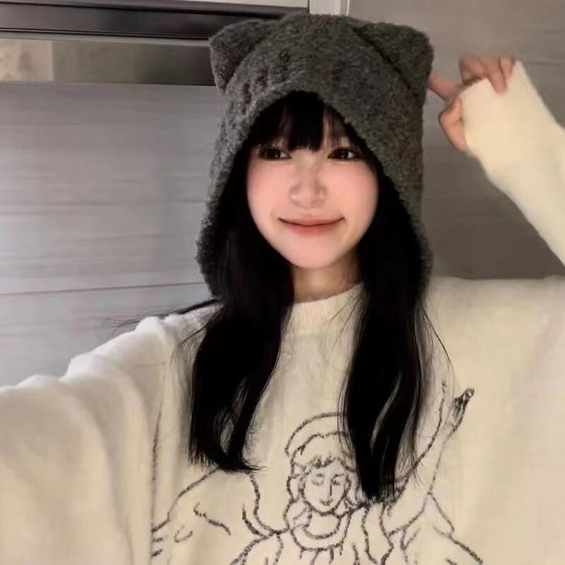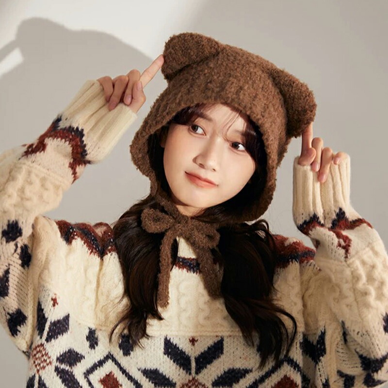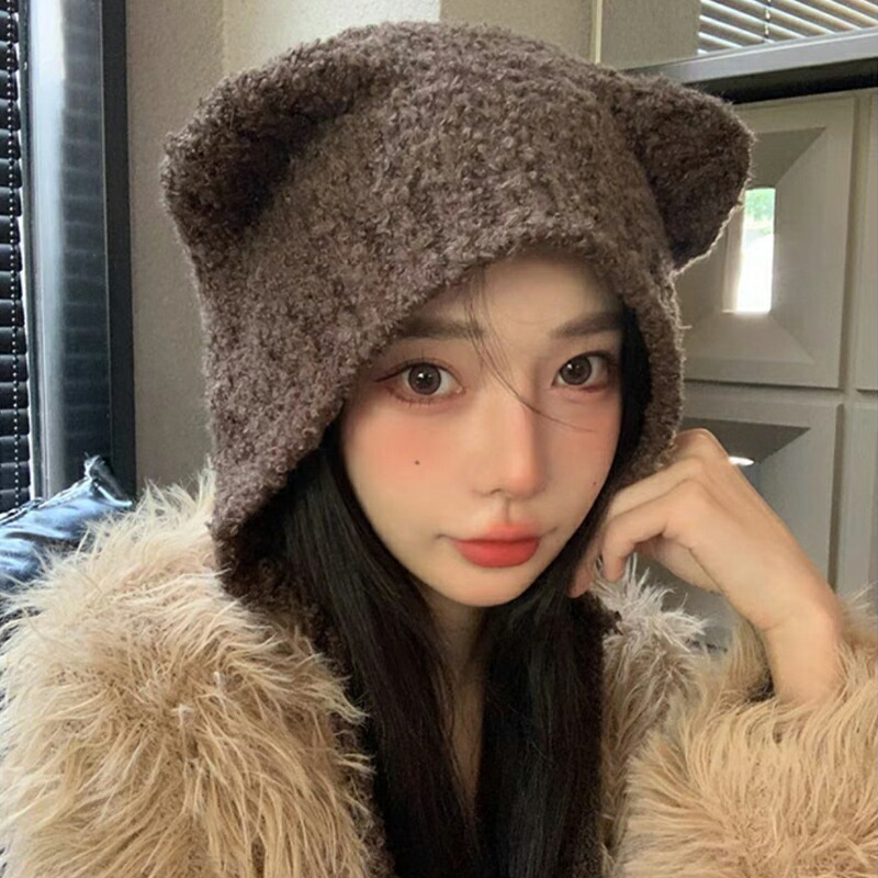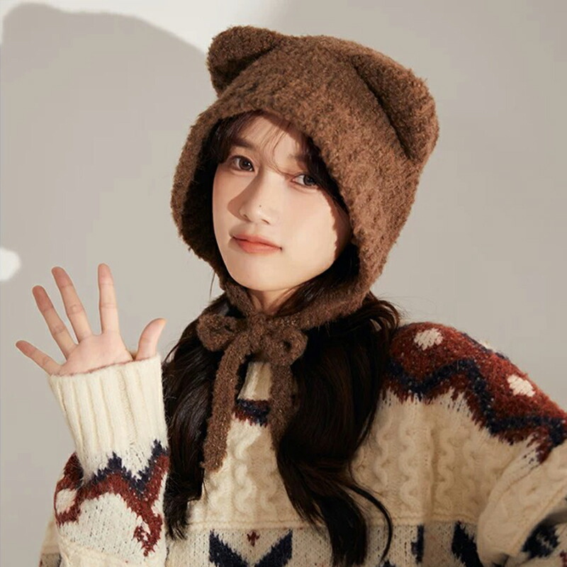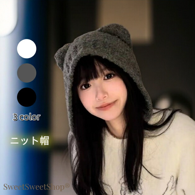 猫耳 ニット帽 小顔見せ 女の子 帽子 帽子 メンズ帽子 ニット帽 特集 ブラック グレー ホワイト ブラック紐付き ブラウン紐付き ホワイト紐付き グレー紐付き