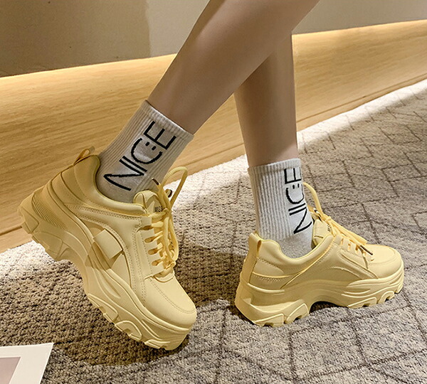 厚底スニーカー レディース スポーツシ レディース靴 スニーカー 通販 ホワイト ベージュ ブラック イエロー 35(内寸22.5cm) 36(内寸23cm) 37(内寸23.5cm) 38(内寸24cm) 39(内寸24.5cm) 40(内寸25cm) 41(内寸25.5cm) 42(内寸26cm) 43(内寸26.5cm)