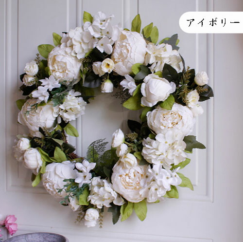 ドライフラワー リース 40cm 玄関 アイボリー ホワイト