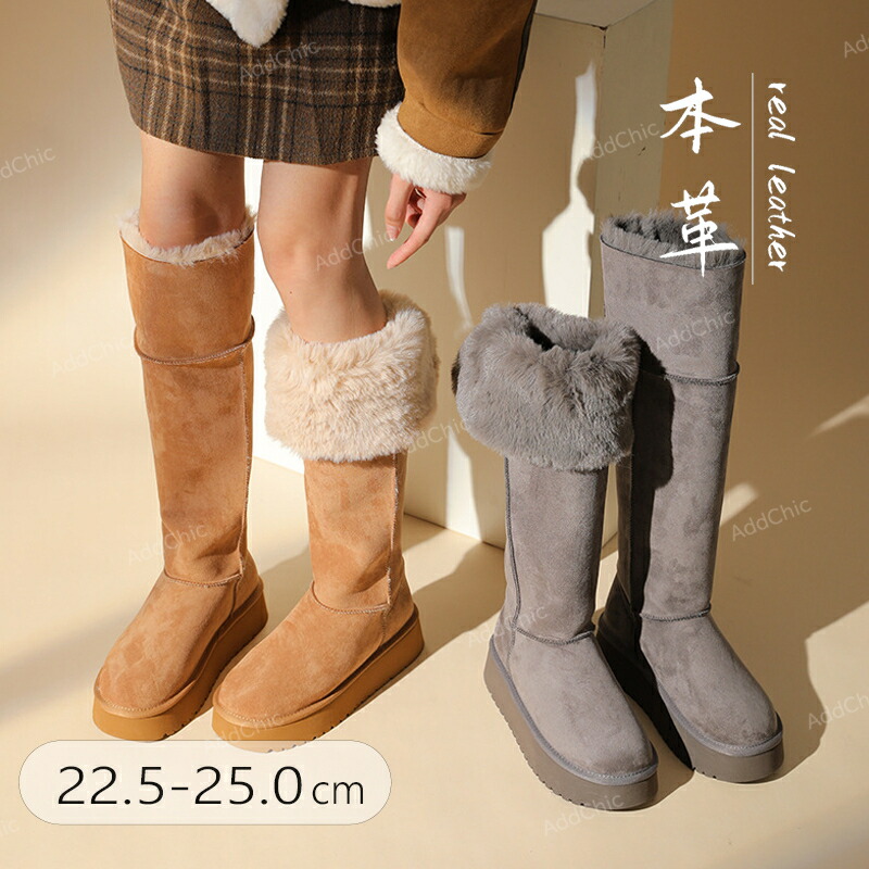 ロング ムートンブーツ 冬靴 本革 レ 靴 新作 ブラウン グレー 35(22.5cm) 36(23.0cm) 37(23.5cm) 38(24.0cm) 39(24.5cm) 40(25.0cm)