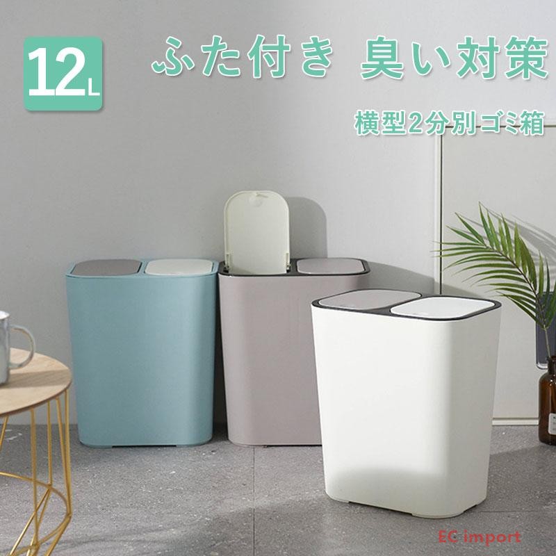 ゴミ箱 ふた付き 2分別ワゴン 蓋つき ホワイト ブルー グレー