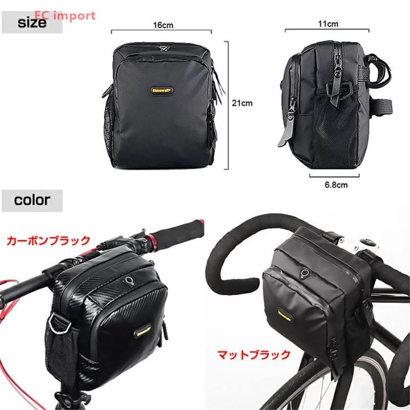 自転車用フロントバッグ ショルダーバッ マットブラック カーボンブラック