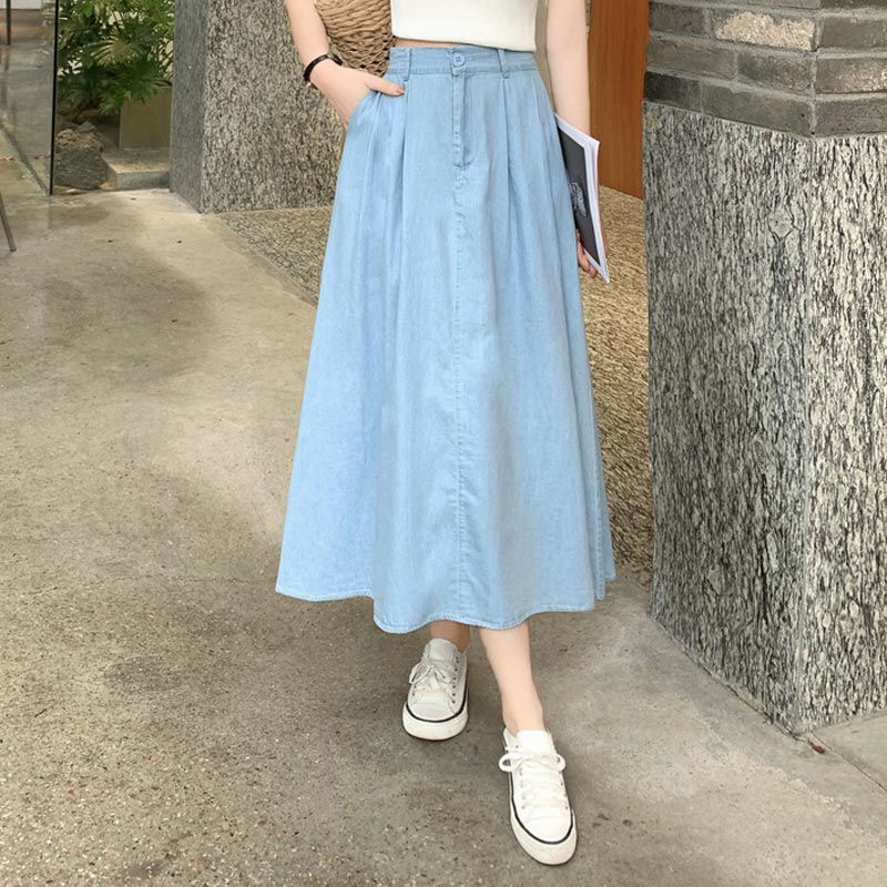 デニム スカート aライン ロングスカ レディースファッション 特集 ライトブルー ブルー