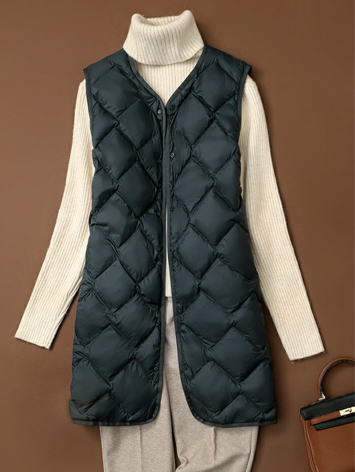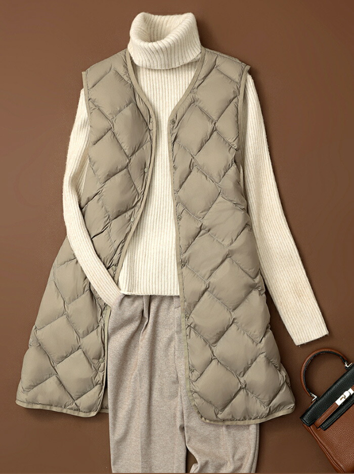 ダウンベスト ロング ホワイトダックダ トップス ベスト 豊富な品揃え L XL 2XL 3XL カーキ ブラック ベージュ ダークグリーン