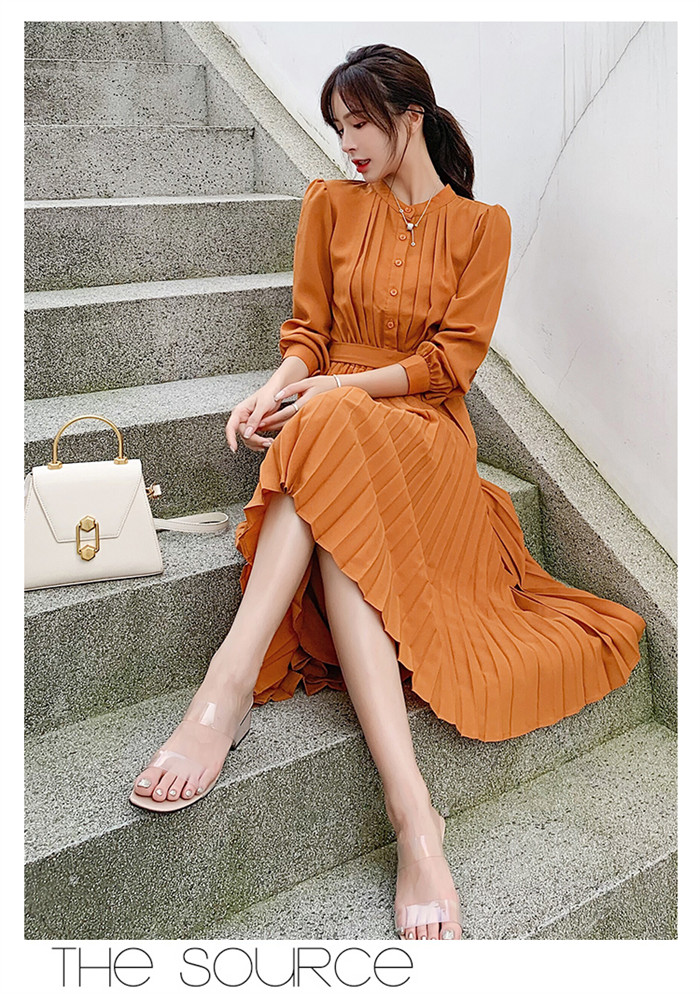プリーツワンピース シャツワンピース ワンピース 続々登場 S M L XL 2XL オレンジ 黒 グレー 紺色